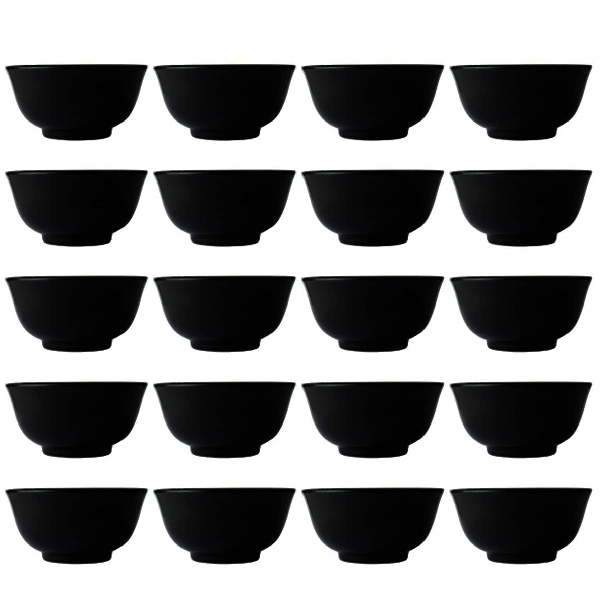Conjunto 20 Tigelas Porcelana Preta Pequena 240ml Oriental 11cm Germer Sopa Missô Sunomono.