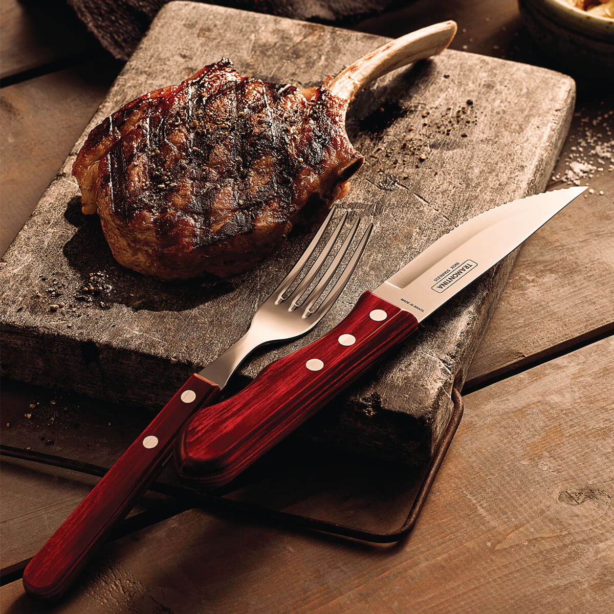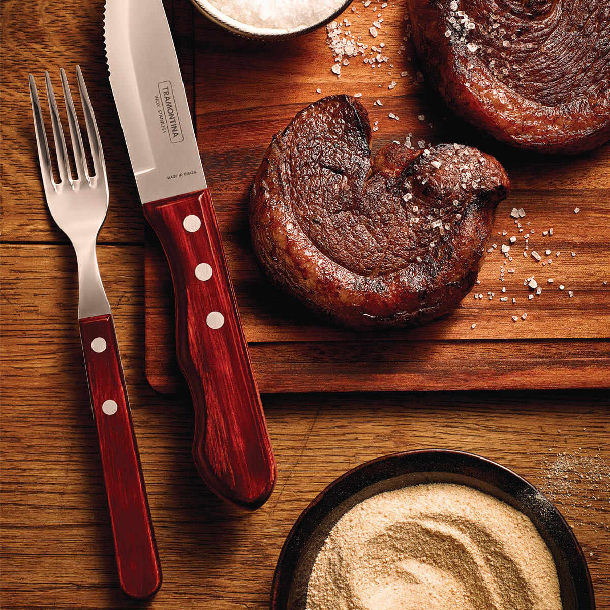 Garfo para Churrasco Jumbo Tramontina Talher Aço Inox Cabo Madeira Polywood Vermelho.
