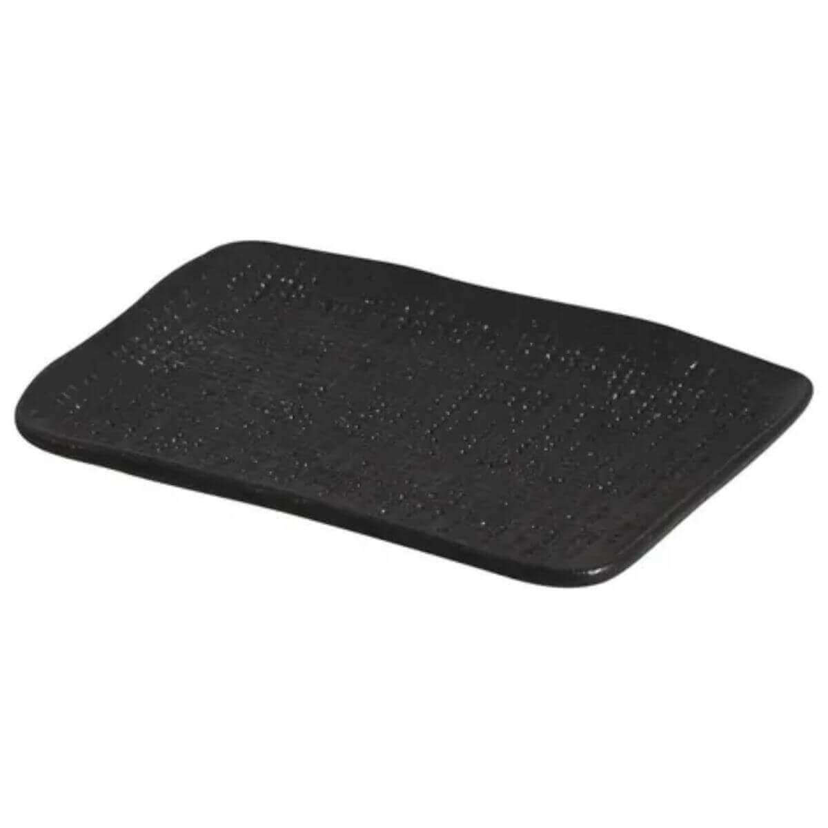 Jogo 12 Travessas Retangulares 18x14cm em Cerâmica Preto Matte Juta Porto Brasil Petiscos Mesa Posta