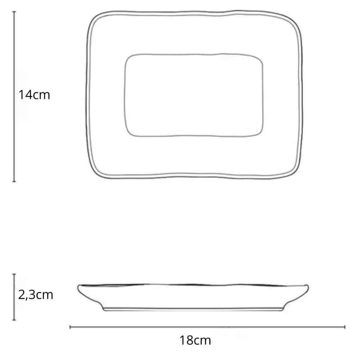 Dimensões de cada travessa: 18cm (C) x 14cm (L) x 2,3cm (A);