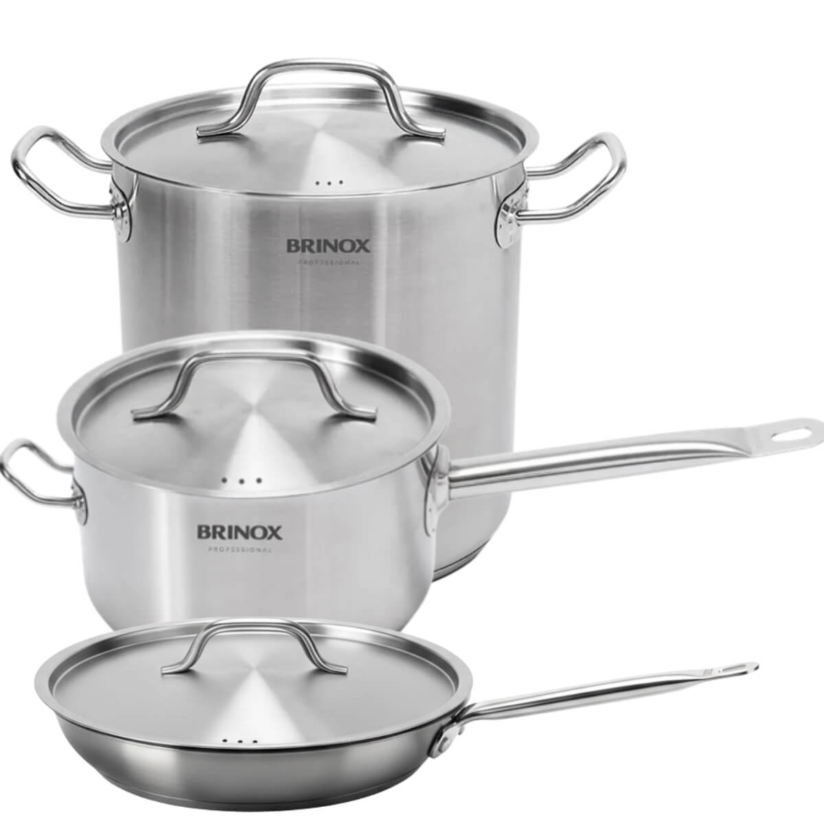 Jogo de Panelas 3 Peças Brinox Profissional Inox 24cm Fundo Triplo com Tampa Cozinha Industrial