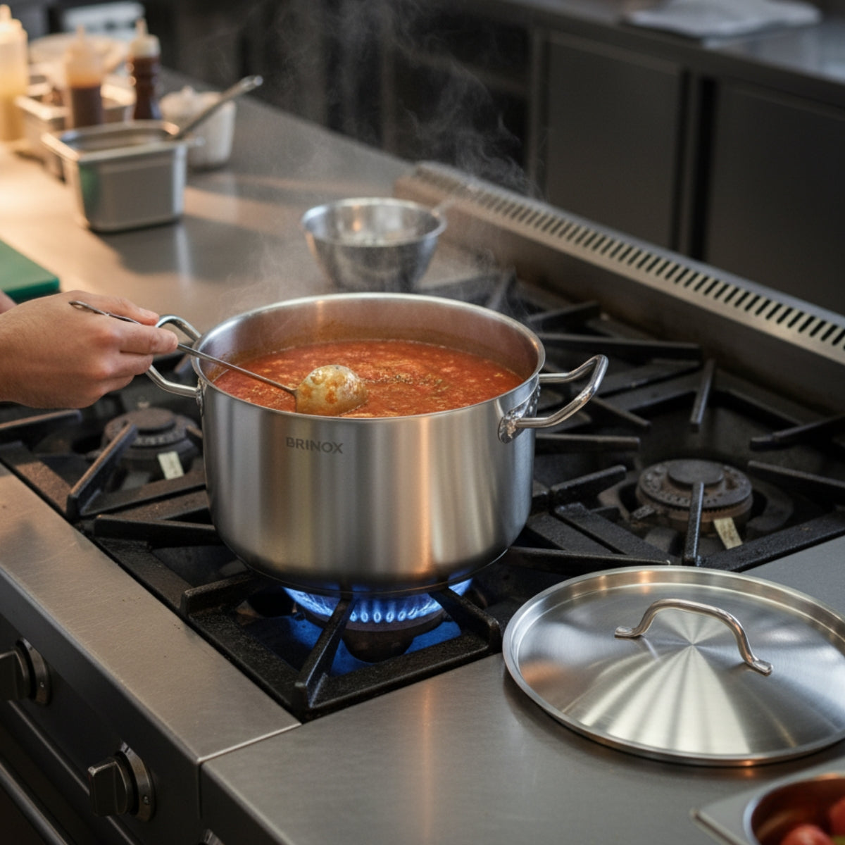 O jogo de panelas Brinox Profissional 32cm foi desenvolvido para quem busca desempenho superior, alta durabilidade e um acabamento sofisticado para a cozinha. Fabricado em aço inox, o conjunto oferece resistência, brilho duradouro e facilidade de limpeza, mantendo sua aparência impecável mesmo após anos de uso. Cada peça conta com fundo triplo, composto por duas camadas de inox e uma camada central de alumínio, garantindo melhor distribuição de calor, cozimento uniforme e maior eficiência energética. Esse sistema evita pontos de superaquecimento, reduz o tempo de preparo e preserva o sabor e os nutrientes dos alimentos. O jogo é formado por uma frigideira, um caldeirão e uma caçarola, todas com tampas, que ajudam a reter o vapor durante o cozimento, otimizando resultados e proporcionando mais suculência. Os cabos e alças são firmes, ergonômicos e seguros, oferecendo conforto e estabilidade ao manuseio mesmo em altas temperaturas.