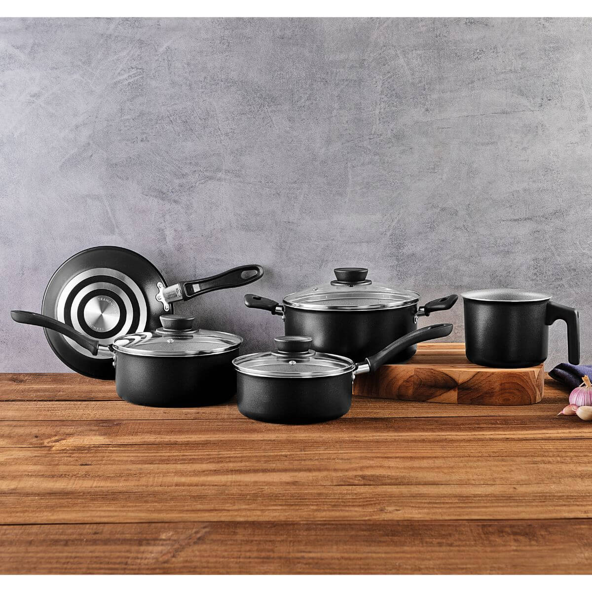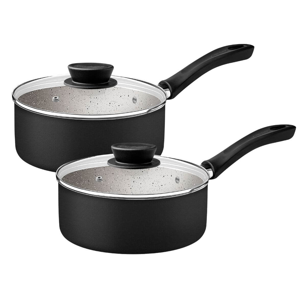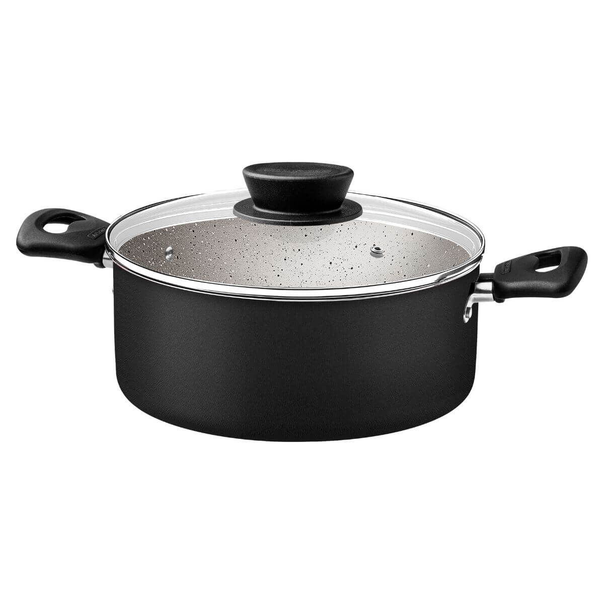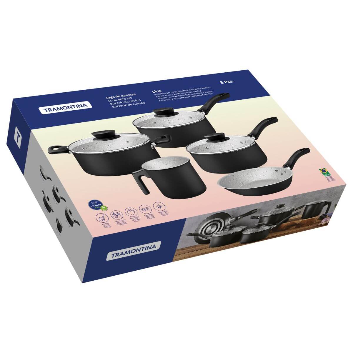 Jogo de Panelas Tramontina Preto 5 Peças Linz Aluminio Antiaderente Starflon Max Tampa de Vidro