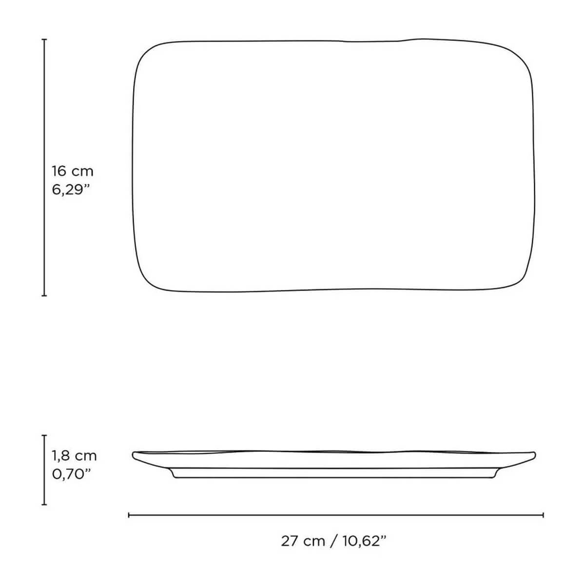 Dimensões de cada prato: 27cm (C) x 17cm (L) x 1,8cm (A);