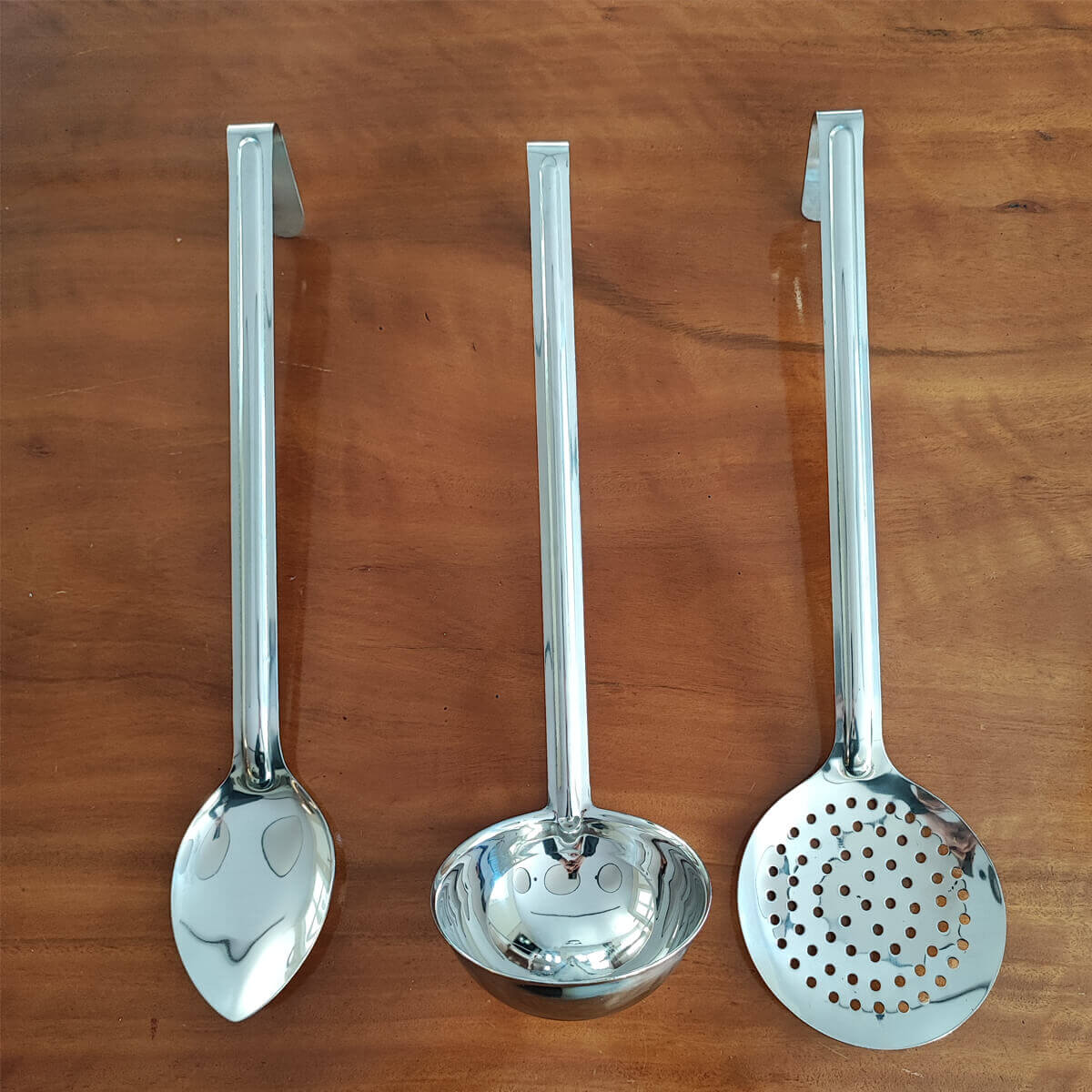 Dimensões de cada escumadeira: 43cm (C) x 11,5cm (L) x 6,5cm (A);