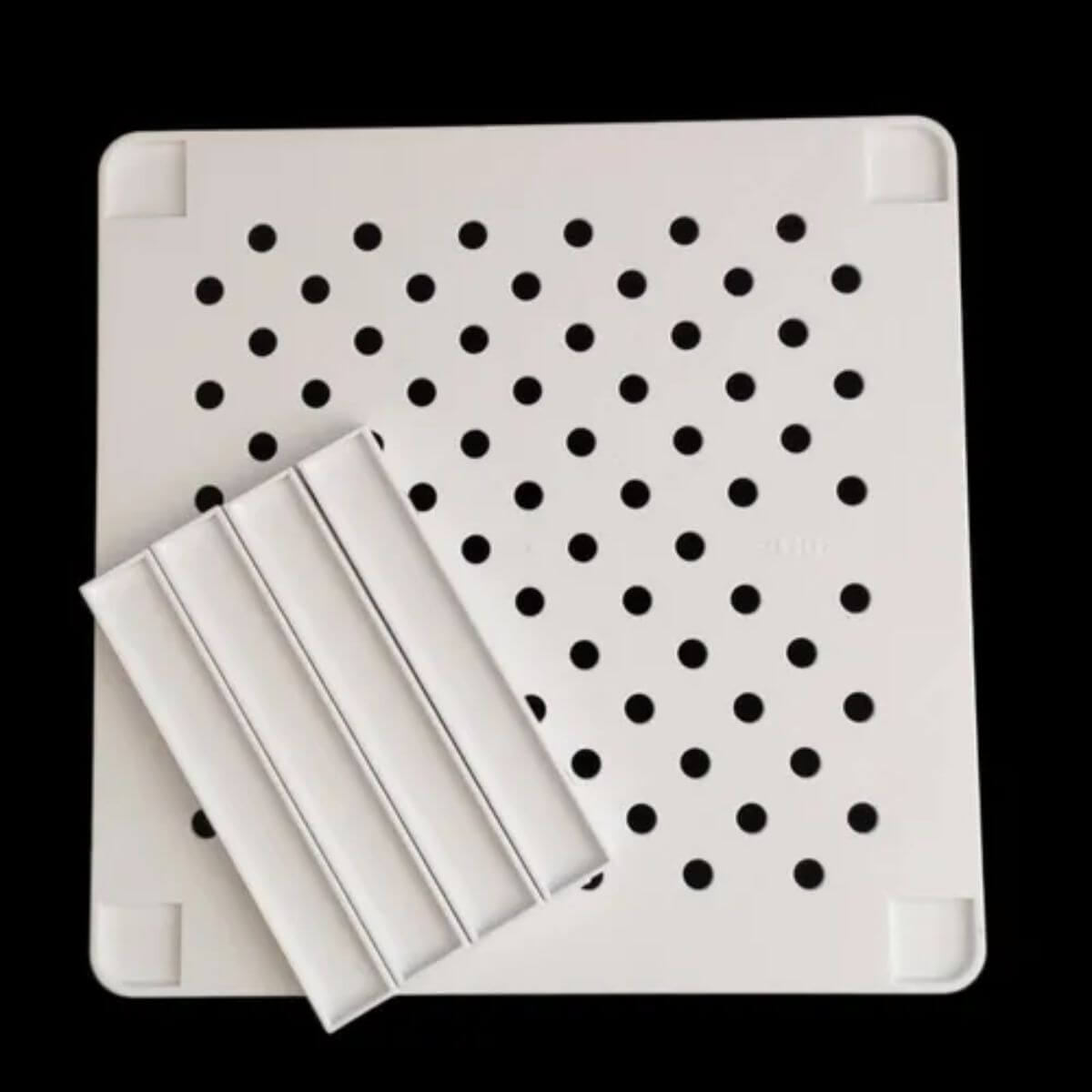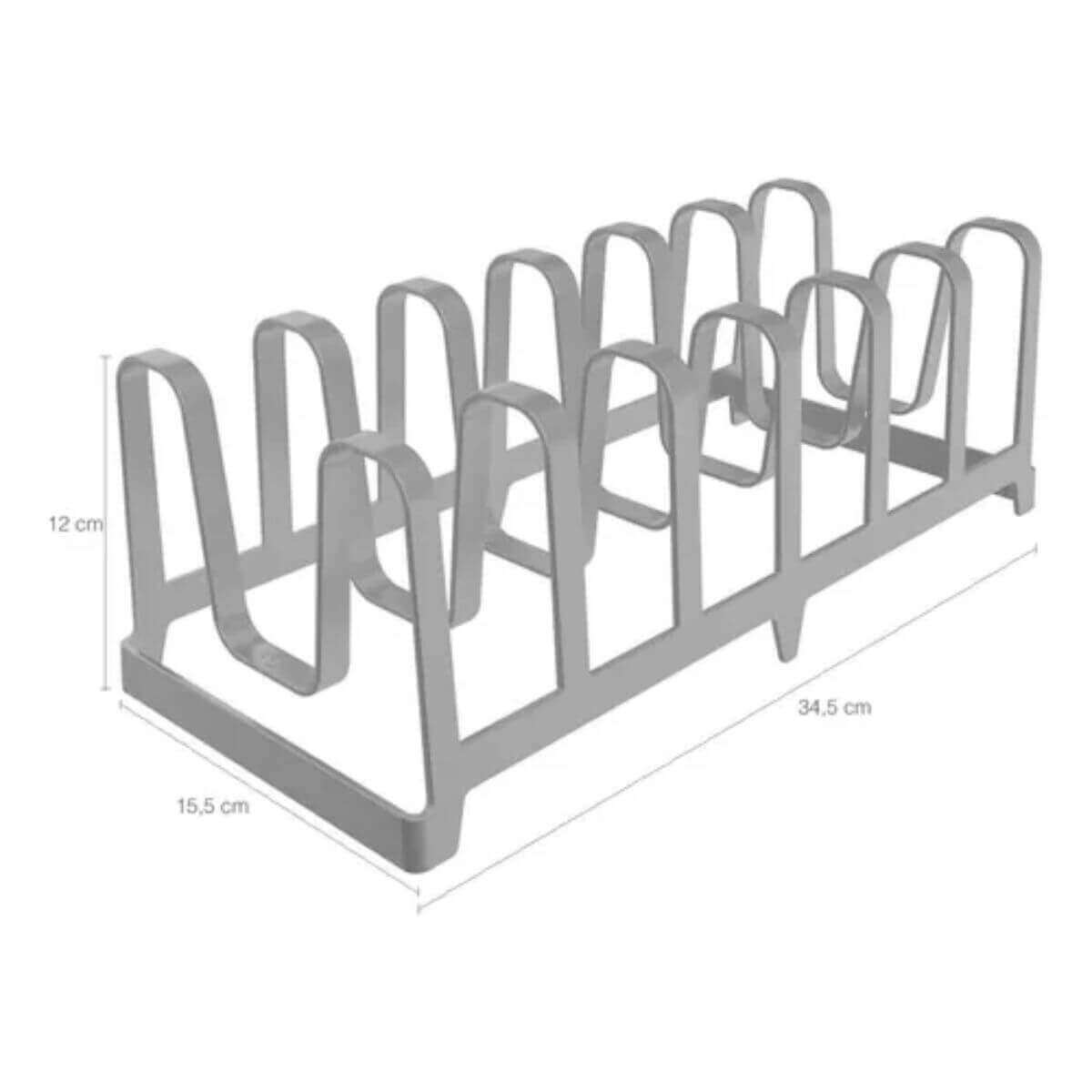 Dimensões do suporte de tampas: 15,5cm (C) x 34,5cm (L) x 12cm (A);