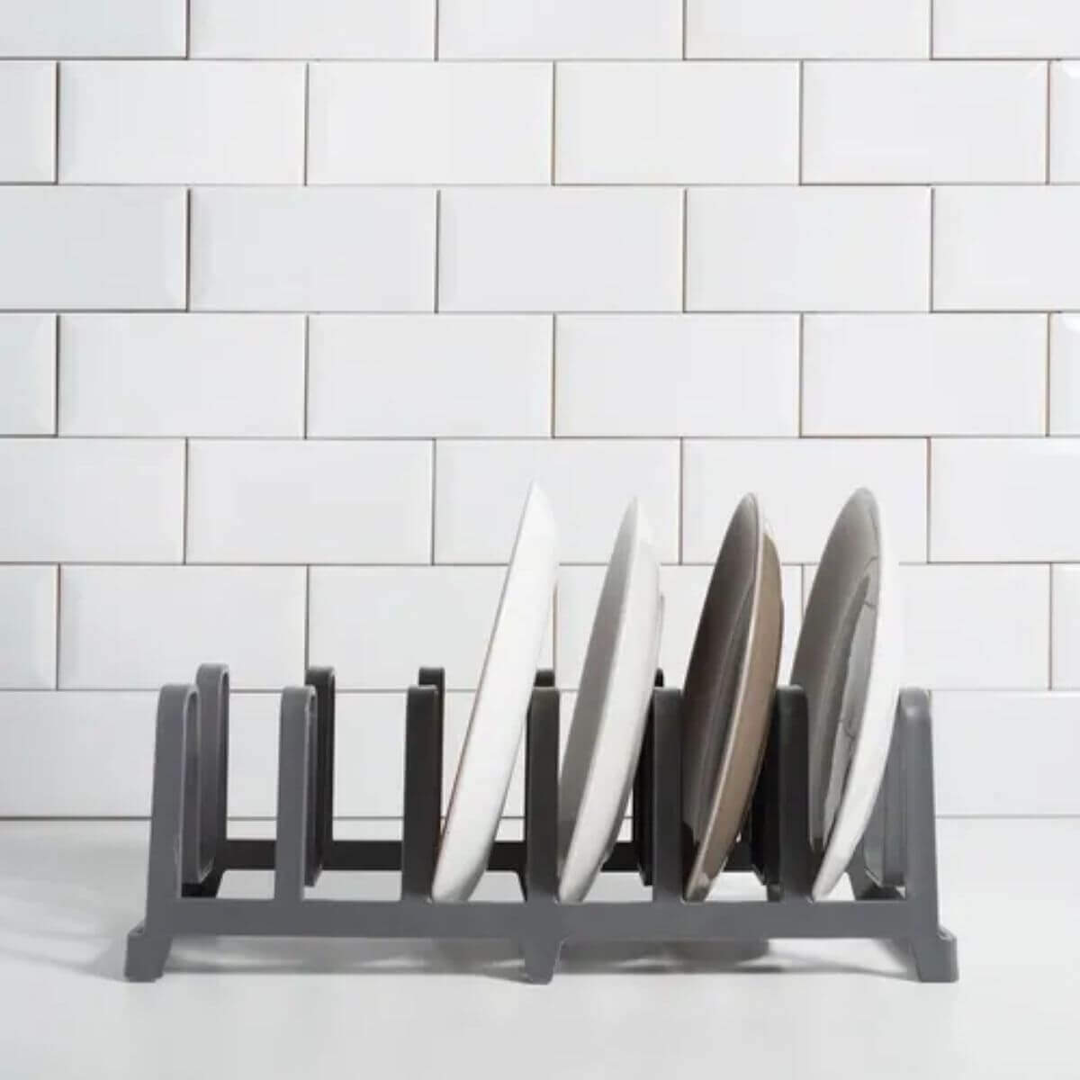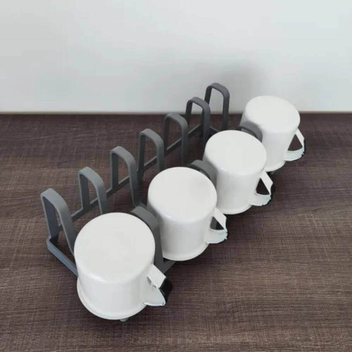 O kit oferece praticidade e aproveitamento de espaço com a prateleira empilhável branca, perfeita para organizar utensílios, louças e mantimentos, e o organizador de tampas, copos e tábuas em tom chumbo, que complementa com funcionalidade, mantendo tudo visível e acessível. Juntos, criam uma solução versátil que otimiza e traz harmonia à cozinha.