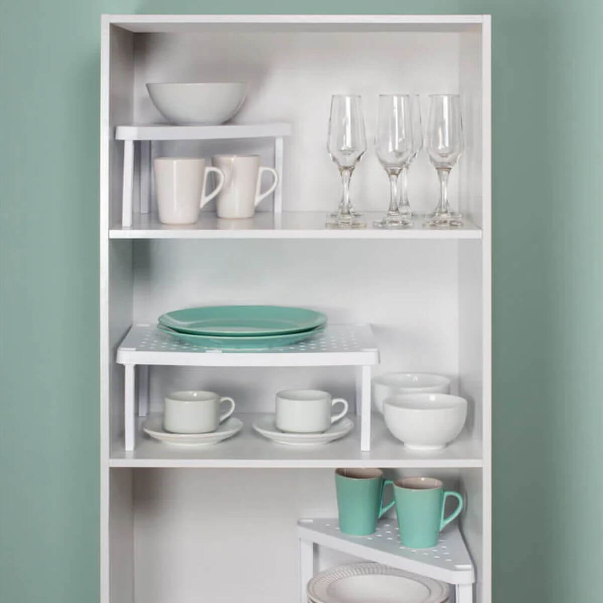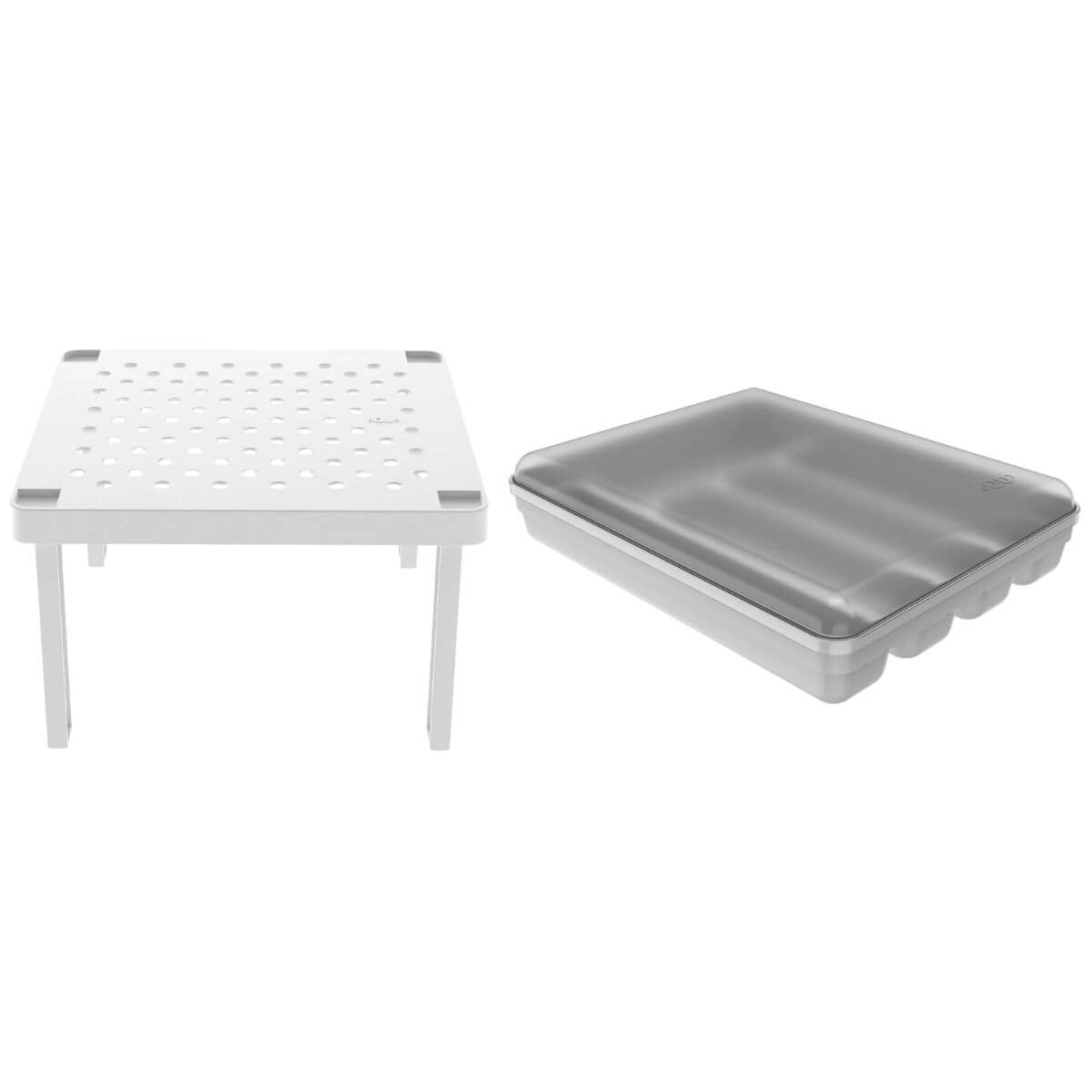 Kit Prateleira Empilhável e Porta Talheres com Tampa para Gaveta Organizador de Armário OU.