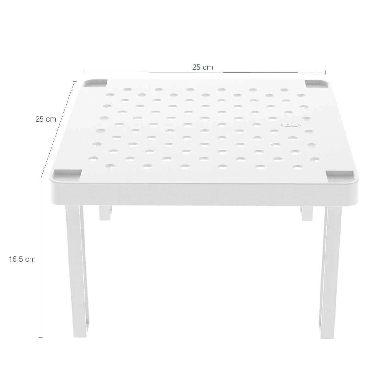 Dimensões da prateleira: 25cm (C) X 25cm (L) x 15,5cm (A), capacidade: até 5kg;