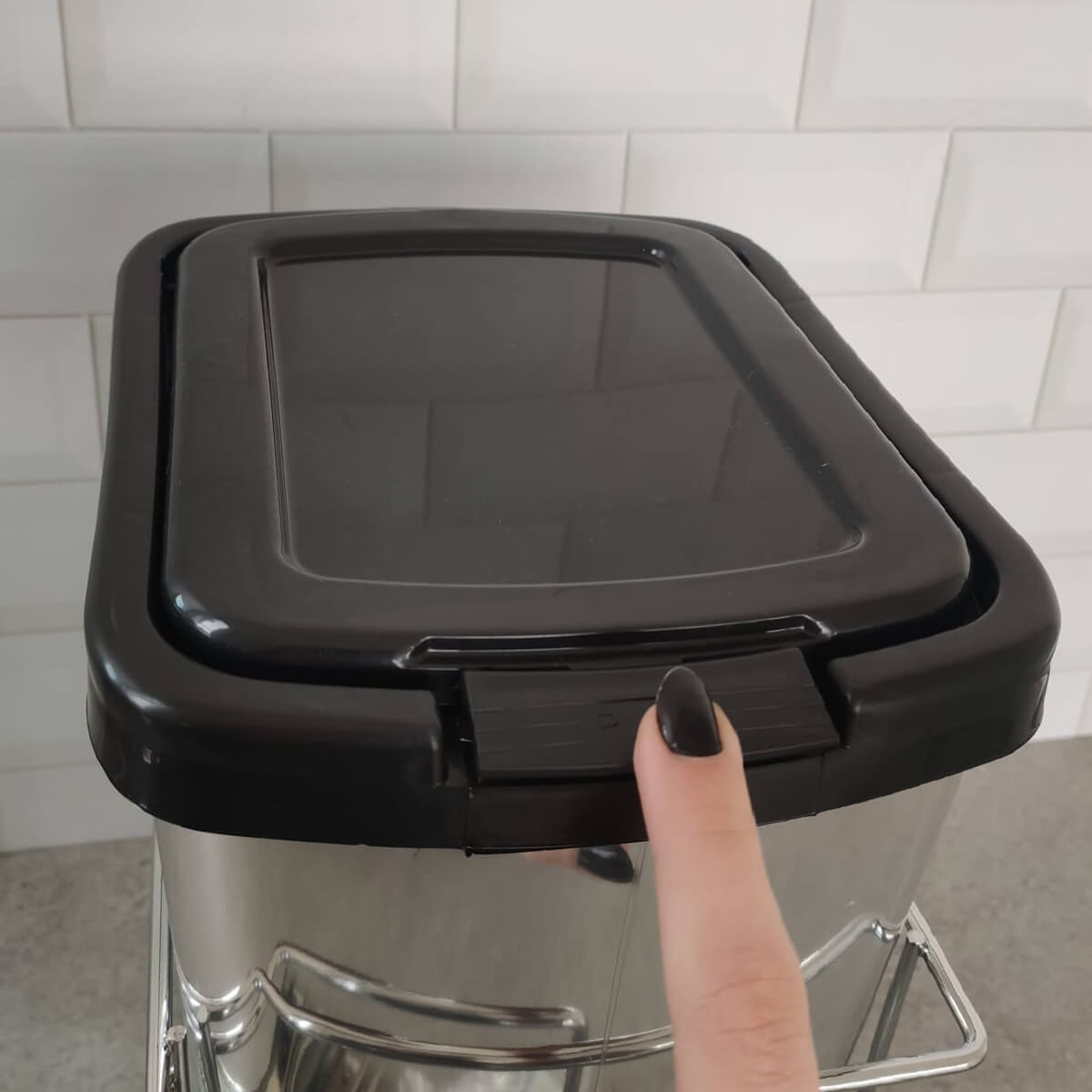 - Lixeira em plástico, com tampa de sistema Click, facilitando o uso e a limpeza;
