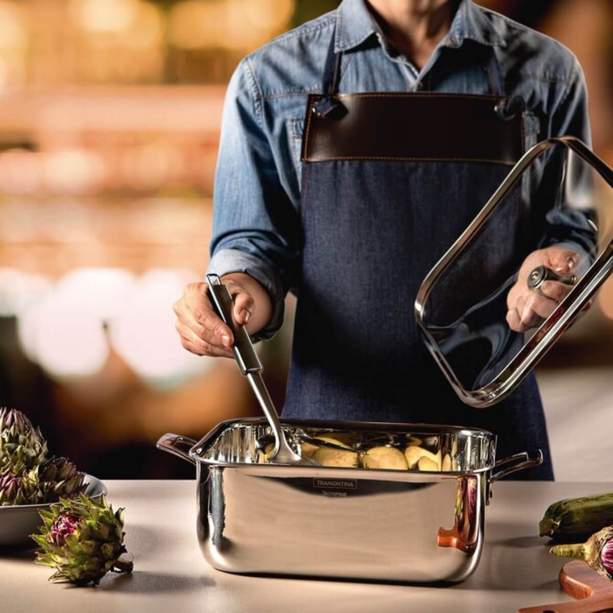 Mesa de Aquecimento a Indução Tramontina 220V Panela Quadrada Porta Utensílios Colher.
