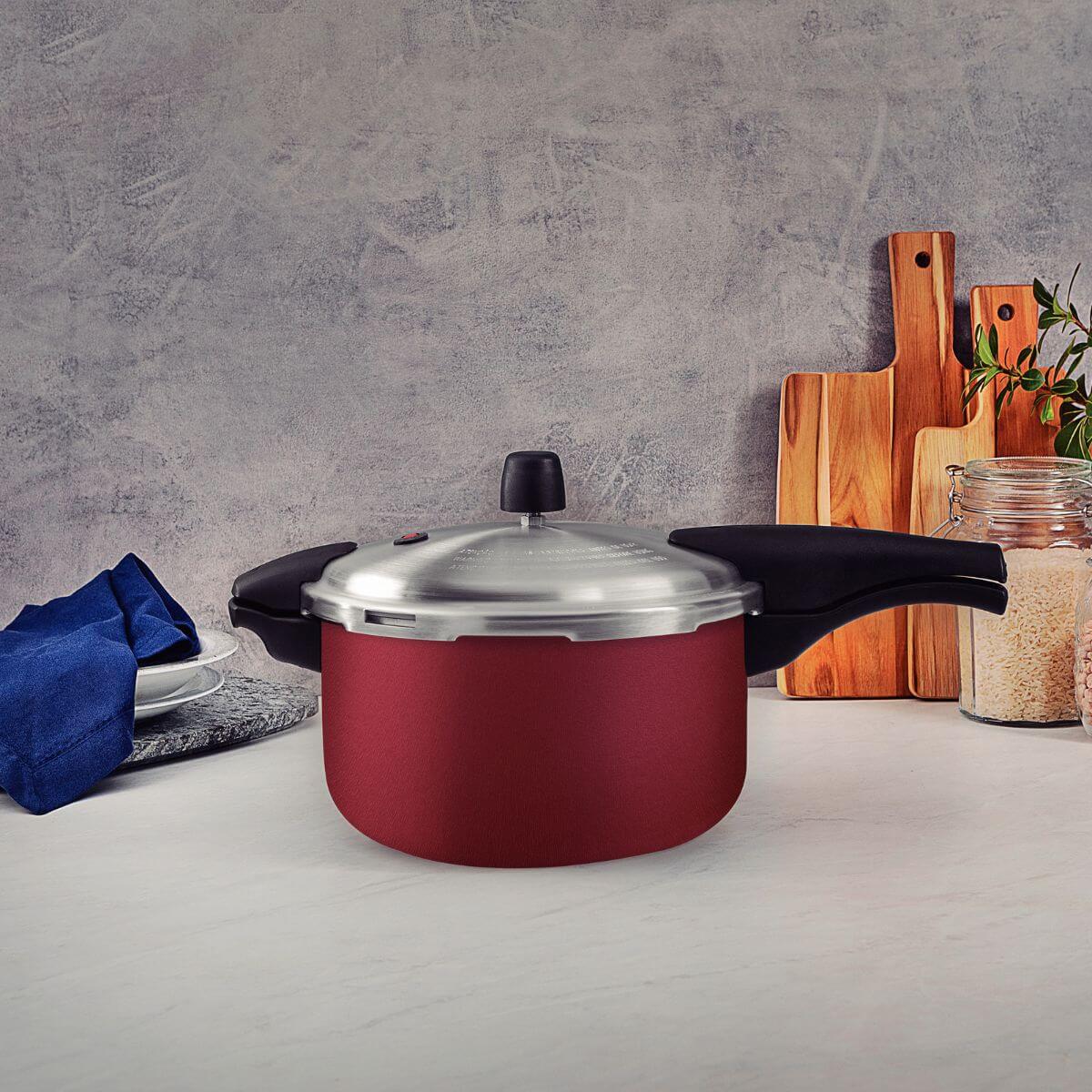 Panela de Pressão Tramontina 6L Vancouver Effrect Antiaderente Starflon Max Vermelho.