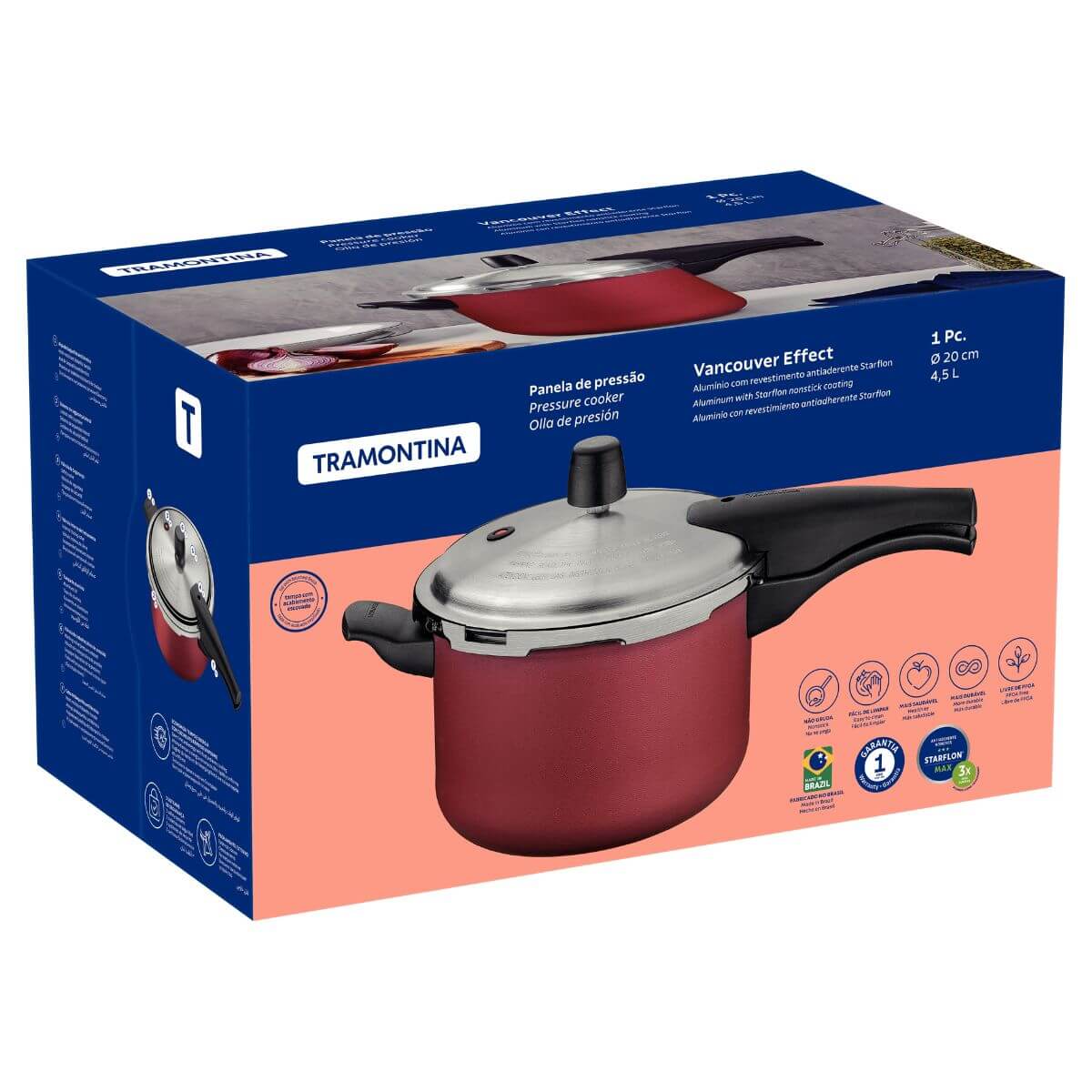 Panela de Pressão Tramontina Antiaderente 4,5L Vermelha Vancouver Effect Starflon Max Cozinha Fogão