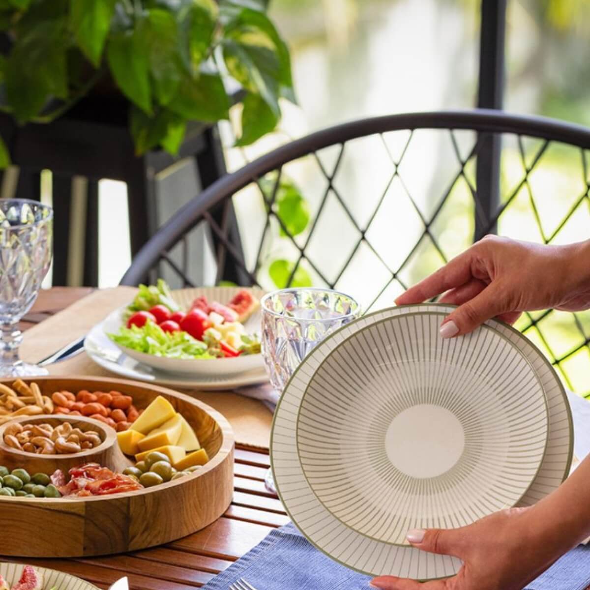 O prato de sobremesa em porcelana da coleção Lineare Tramontina é a escolha ideal para valorizar cada detalhe das suas receitas. Inspirado nos raios de sol, seu design com linhas anguladas une originalidade e sofisticação em uma peça única. Versátil e elegante, transforma tanto ocasiões especiais quanto os momentos do dia a dia em experiências marcantes, elevando suas criações culinárias e tornando a mesa posta um verdadeiro espetáculo visual.