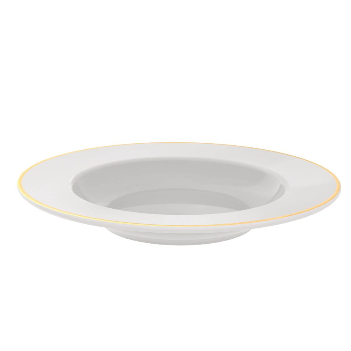 Prato Fundo em Porcelana Tramontina Branco com Borda Dourada Filetado 23cm Elisa