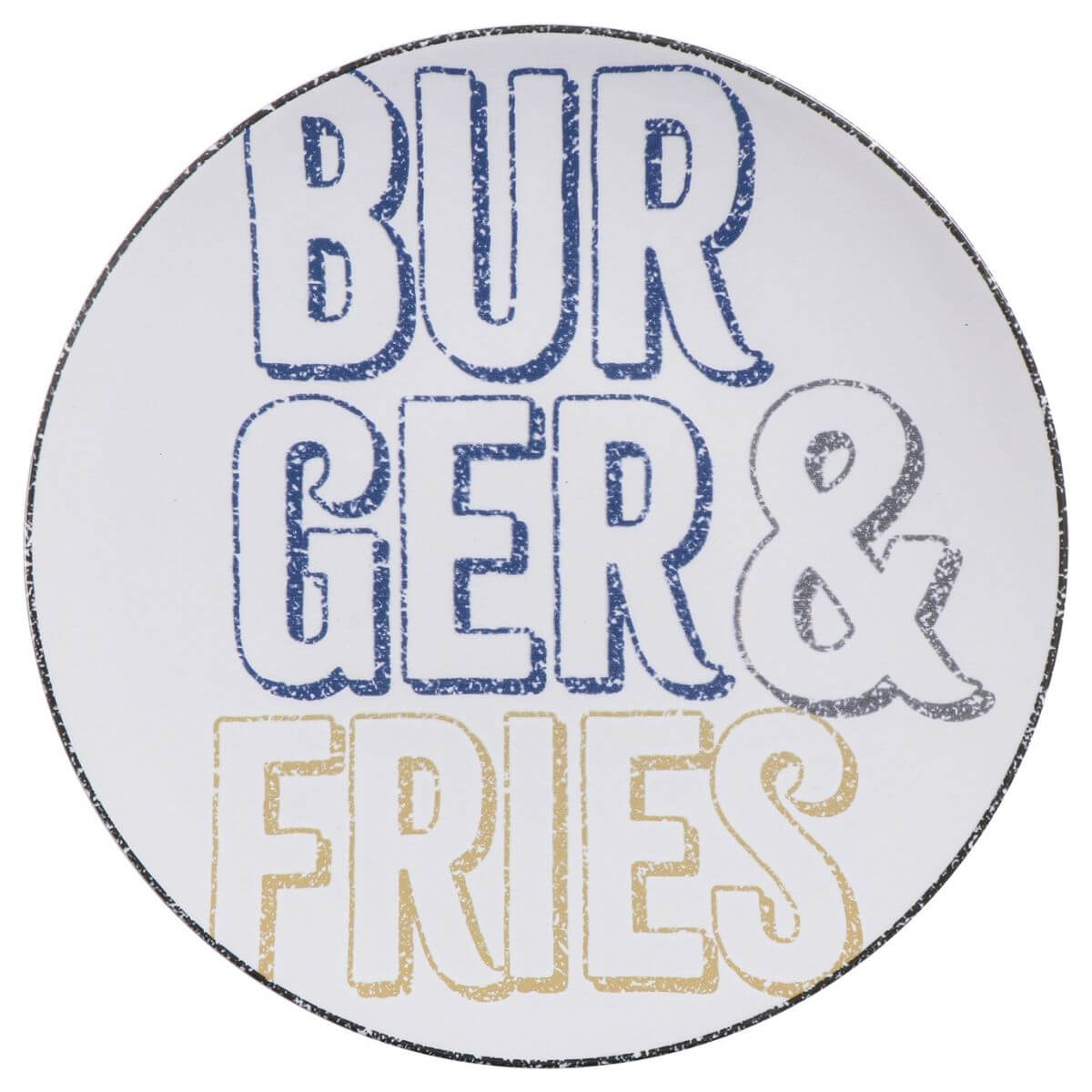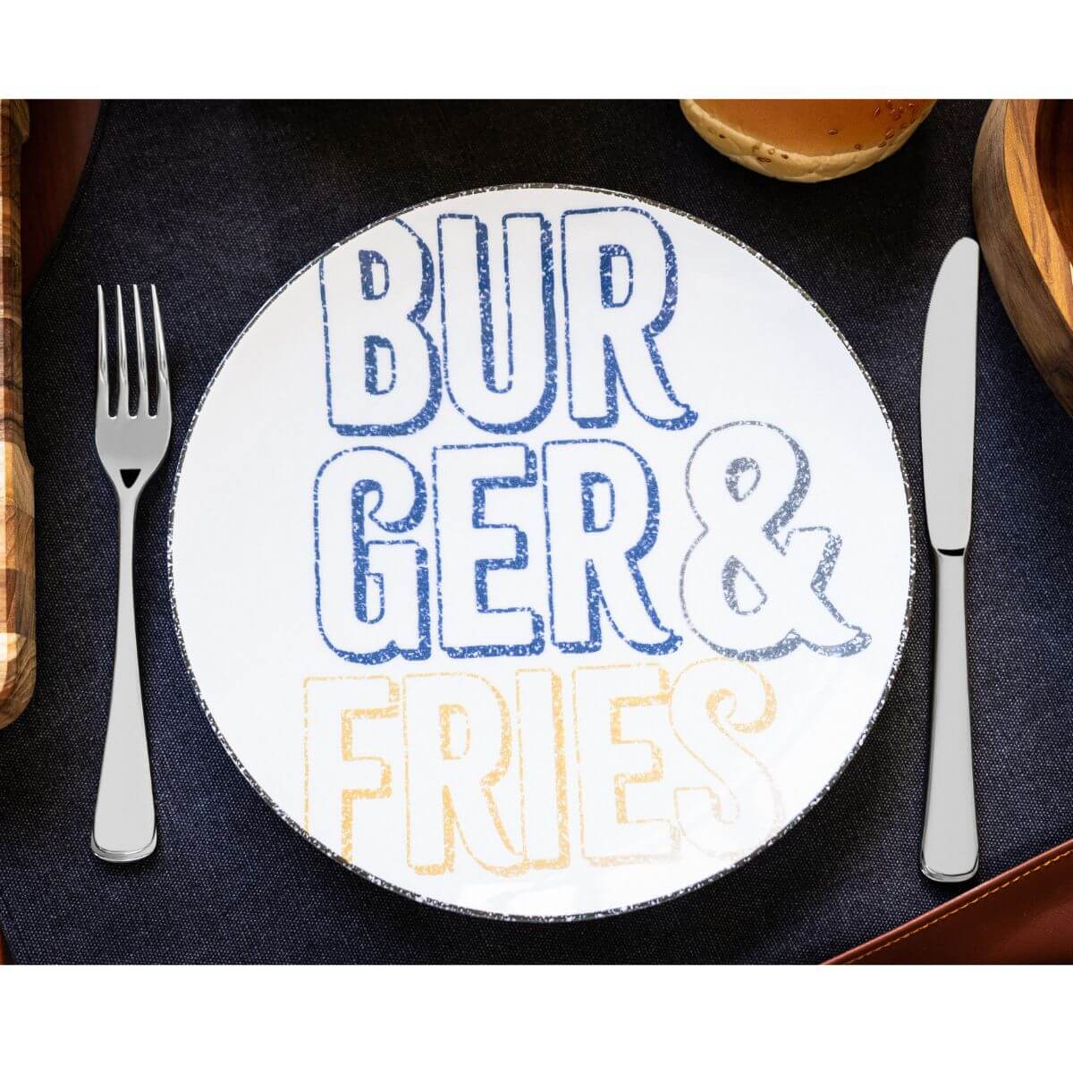 Prato Raso para Hambúrguer Lanche Temático Porcelana Decorada Mesa Posta 25cm Tramontina Texas.