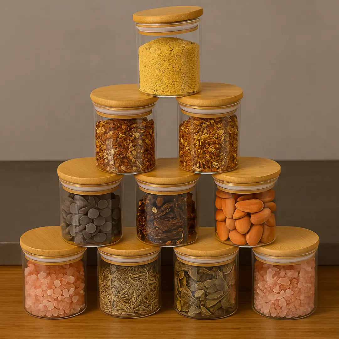 Porta Temperos com Tampa de Bambu – Kit com 6 Unidades de 200ml | Casa Splendida