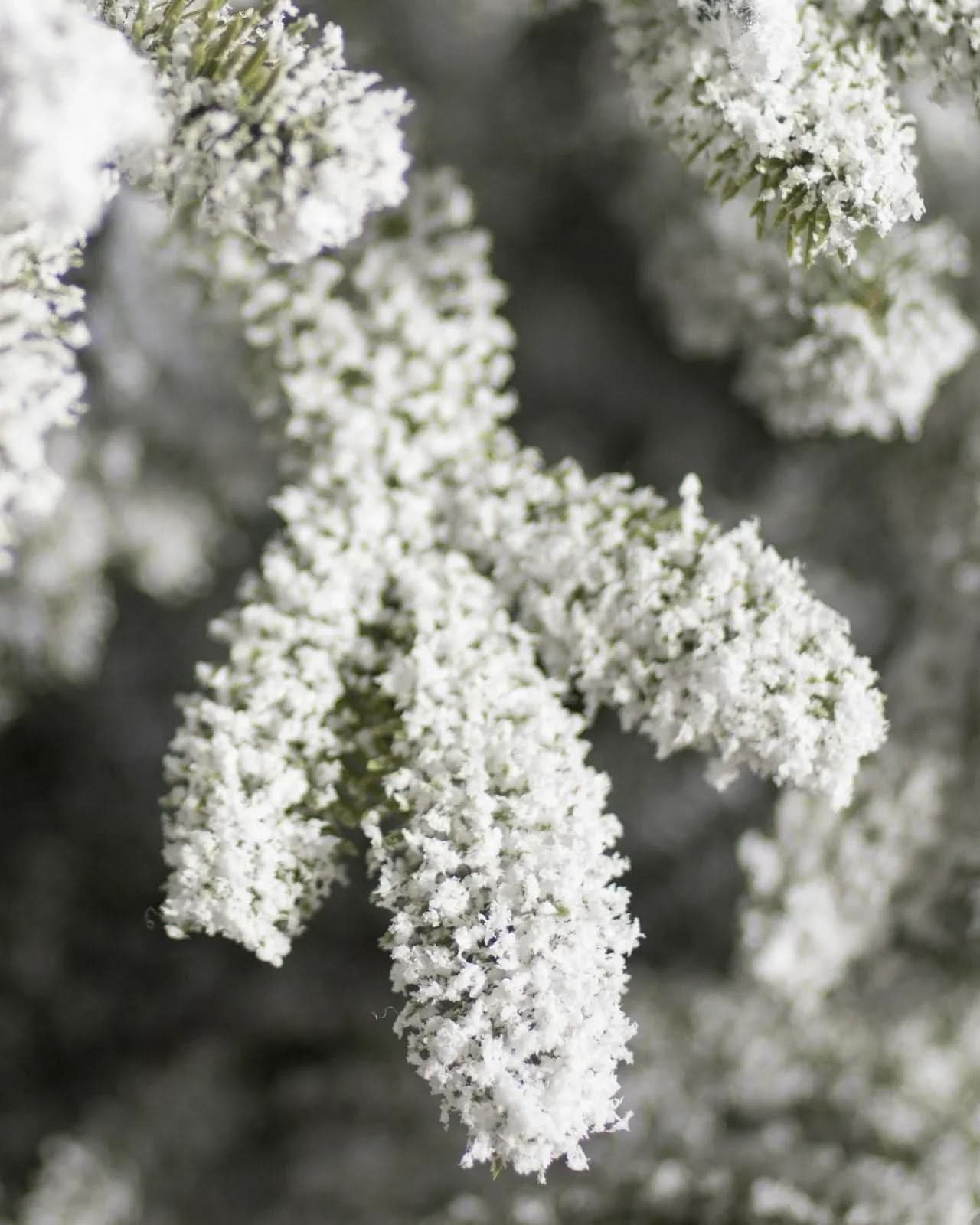 • Material: galhos em PVC de alta qualidade com acabamento nevado; suporte em metal reforçado
