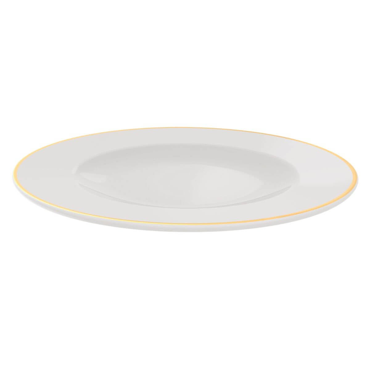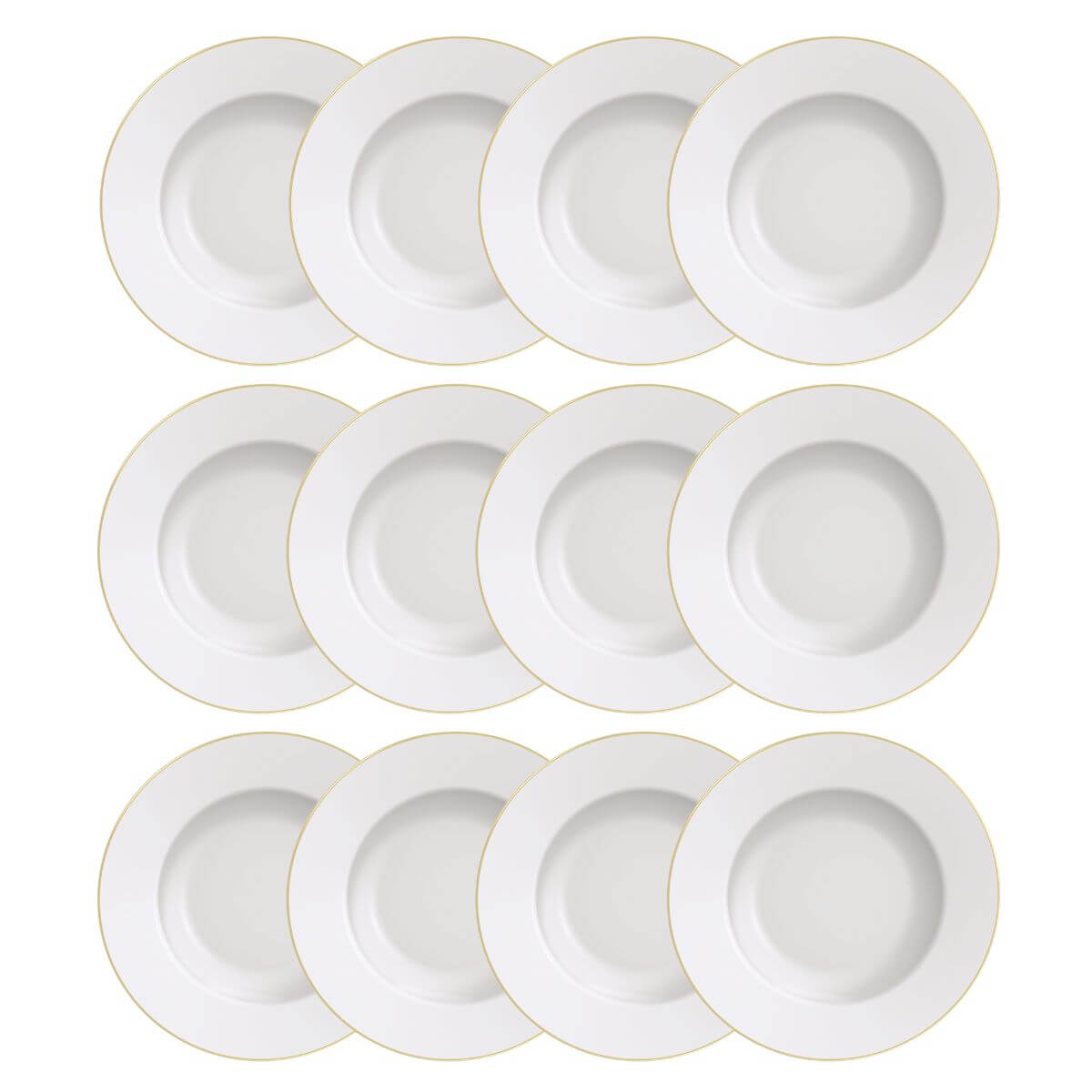 Kit 12 Pratos de Sobremesa Branco com Borda Dourada Porcelana Tramontina 21cm Filetado Elisa.