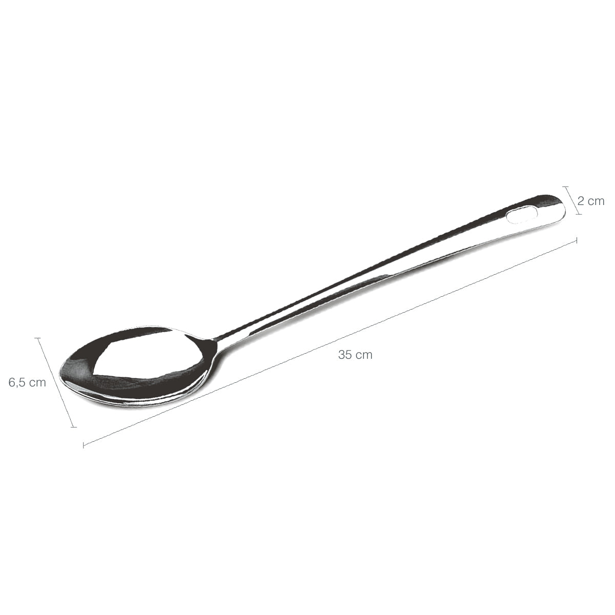 Fabricadas em aço inoxidável de alta qualidade, essas colheres garantem resistência à corrosão, facilidade na higienização e longa vida útil, mesmo em uso intenso. Seu design liso e sofisticado proporciona um toque profissional ao serviço, enquanto o cabo ergonômico e o comprimento de 35cm oferecem mais conforto e segurança no manuseio, evitando contato direto com o calor.