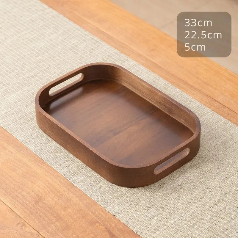 Bandeja de madeira e bambu com alças vazadas, perfeita para servir com estilo e organizar ambientes com charme natural.