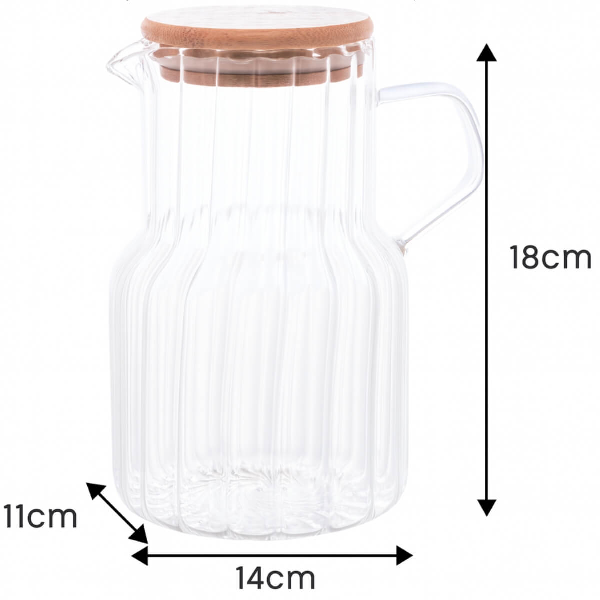 Kit 2 Jarras de Vidro Borossilicato com Tampa Bambu 1,1L Bico Direcionador Transparente Lyor.